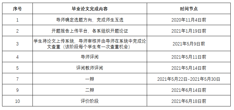 2021届本科毕业论文工作已经启动,重要时间节点如下,具体安排及材料归档要求见附件。
