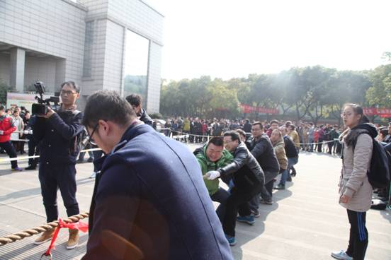 2014年12月29日中午,av直播 教职工新年拔河比赛在安中大楼门口广场举行。av直播 分工会主席李浩明老师组织邵丽﹑伍湘陵﹑陈彬﹑毛孟凯﹑朱福建﹑邓启明﹑郑建华﹑武建章﹑李永涛﹑冷军﹑郑凌燕﹑傅梅﹑王凡等13位老师参加,因实力悬殊,最终不敌教师教育av直播 队。
