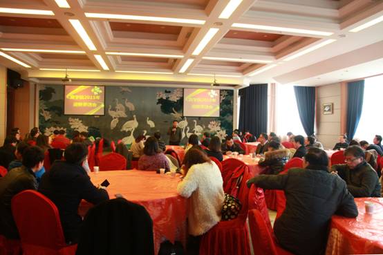 全体教师在学校白鹭厅举办了一场别开生面的“2015年迎新茶话会”。