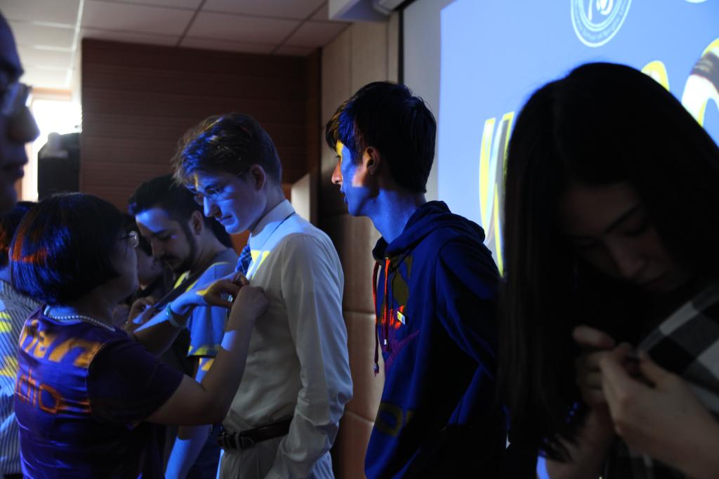随后,熊德平书记等六位领导在现场为新生代表们佩戴了av直播