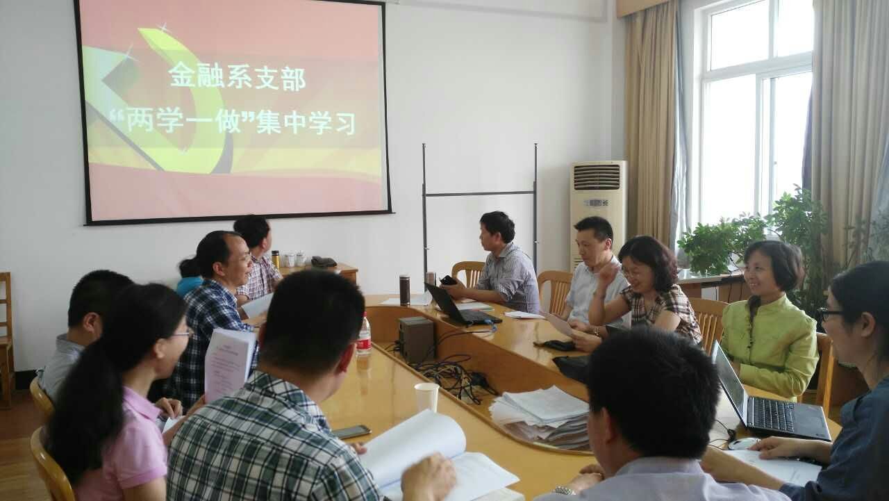 党委关于“两学一做”学习教育的部署要求,随后组织党员同志们集中学习了《习近平总书记系列重要讲话读本(2016年版)》和《之江新语》两本著作。各党员同志纷纷表示将结合自身实际情况制定个人学习计划,努力加强自身建设。金融系部分非党员教工也参与了本次学习会。
