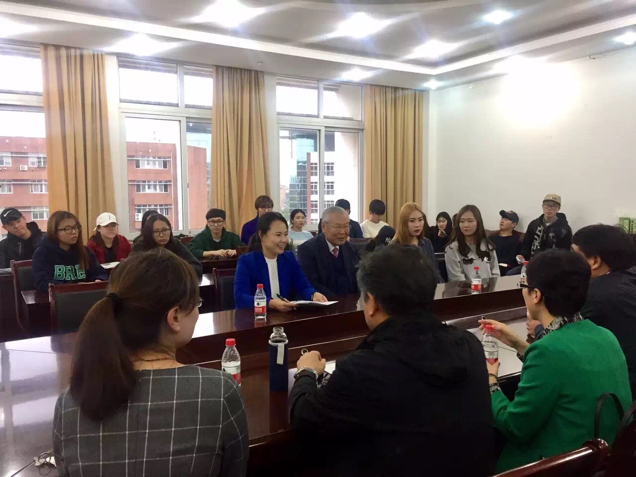 412会议室举行座谈会。教师代表邱妘教授、王其冬教授、白泉旺副教授,教务办、国际合作办、留学生办以及中韩2+2项目的留学生们一同参加了座谈。