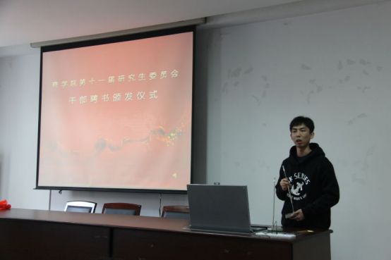 414室举行。院党委副书记邵丽老师、院团委书记陈彬老师、学工办主任董璐老师、院第十一届研究生委员会主席团成员、各部门正副部长出席本次活动。