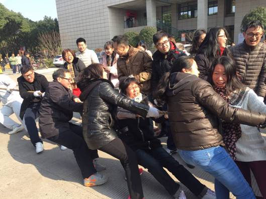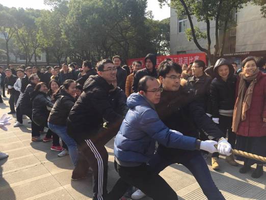 12月29日中午,校工会组织学校各分工会在安中大楼前举行“迎新年”拔河比赛。av直播 党委书记胡亚娥、分工会主席李浩明组织杨柳、姚乐彦、张晓婳、施晟、陈彬、王昕天、苏小松、闭明雄、靳来群、蒋鹏涛、余新平等av直播 教师积极参与此项活动。在首轮比赛中,av直播 队一鼓作气轻松战胜潘天寿艺术av直播 队。第二轮比赛中,由于实力相差悬殊,最终不敌体育av直播 队。