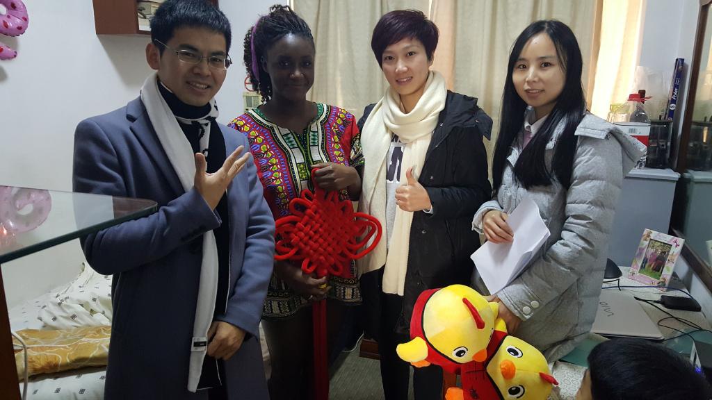 邵丽老师逐个探访寝室,为留学生们送上了新年祝福和礼物,介绍了中国年的风俗和寓意。同时,亲切地询问寝室成员假期安排,不断叮嘱同学们要注意自身安全,增强安全防范意识。留学生们纷纷表示感谢和祝福。
