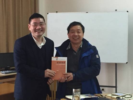 报告完毕后,与会人员进行了热烈的讨论与交流。彭新敏教授做了点评总结,建议增加对知识溢出和商业竞争之间冲突逻辑的思考,以及与主流组织与管理理论开展对话可以进一步提升本研究的理论价值,并在最后向张教授赠送了《超越集群》一书来表达谢意和对祝愿。