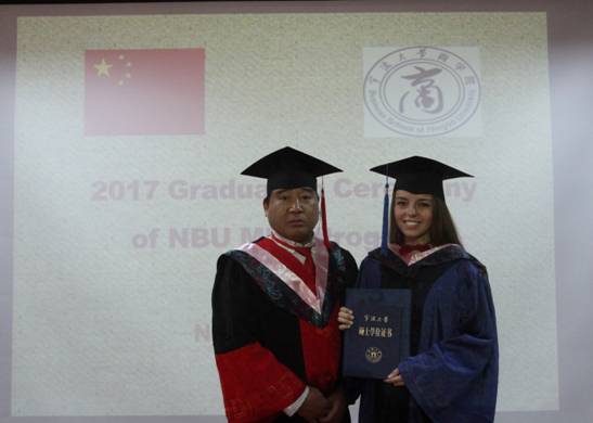 中外师生和毕业留学生亲朋好友代表共同见证了这一令人激动的时刻。邵丽副书记宣读了该届MBA项目毕业生名单,周新苗副院长代表学校对顺利完成学业并已获得硕士学位及毕业证书的同学们表示热烈祝贺。乌克兰籍学生PLUTENKO, OLEKSANDRA代表毕业生登台深情回顾了自己在众人诧异中来华及在宁大求学、成长的点滴,也对宁大MBA全英文项目国际化的av直播