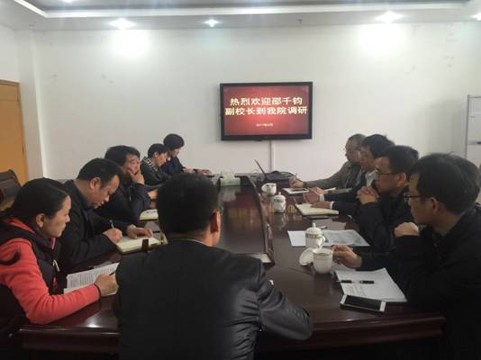4月5日下午三点,邵千钧副校长、教务处王晓东副处长、李俊华副处长、发展规划处叶文明副处长一行到av直播就专业优化调整进行了调研。av直播范柏乃院长、胡亚娥书记等av直播