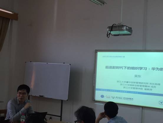 2017年4月19日下午13:00-14:30,av直播 学术沙龙(2017年第7期)在11#518会议室如期举行。学术沙龙由企业管理研究所所长彭新敏教授主持,浙江大学管理av直播 吴东副教授作为演讲嘉宾分享了《后追赶时代的组织学习:华为的洞察》。