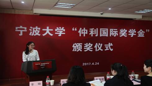 2015-2016学年“仲利国际奖学金”颁奖仪式在av直播109报告厅隆重举行。仲利国际租赁有限公司副总孙博祥、仲利国际人力资源处总监许耿皓、宁大校友仲利国际宁波分公司杨诗颖、宁大校友仲利国际宁波分公司伍亦菲、仲利国际人力资源处周唯、av直播党委副书记邵丽、学工办辅导员、20名获奖学生及部分学生代表出席颁奖仪式。av直播学工办主任董璐主持颁奖仪式。