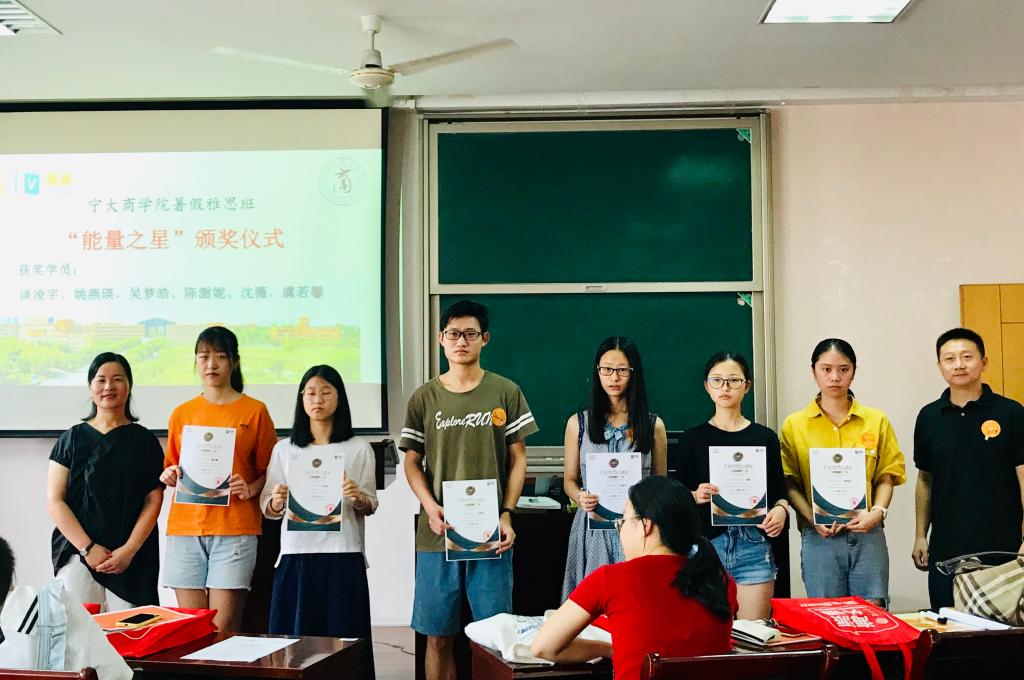 为帮助学生更好的成长发展,将会创造更多的平台和机会,希望同学们通过努力赢得未来赢得机会。接着,华通海派校长周通介绍了雅思强化班的相关课程安排。会上,韩雯琛给预习表现出色的谈凌宇、姚燕瑛、吴梦皓、陈澍妮、沈薇、虞若馨6名学生颁发“能量之星”的奖状证书。最后,2016级金融专业叶山上作为优秀学生代表发言,表示将会全身心投入雅思决战,冲击名校梦想。在新学期即将到来之际,以全新状态投入新的学业阶段,遇见更优秀的自己。