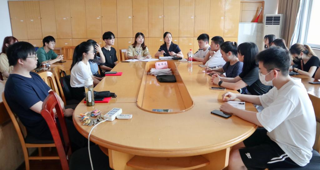 7月3日下午,av直播召开学生干部务虚会议。会议由团委副书记章舒怡主持,党委副书记韩雯琛出席,商院学生会、风华工作室、党员之家、社委会、研究生会等各组织代表与会。
