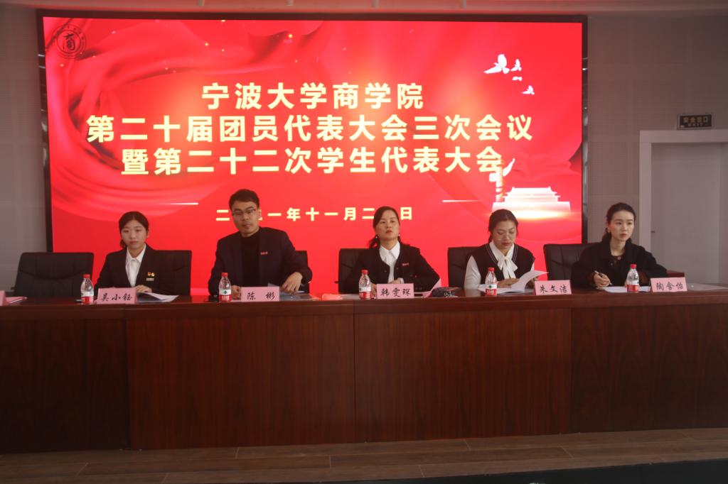 11月20日,av直播第二十届团员代表大会三次会议暨第二十二次学生代表大会在曹光彪商科楼5楼报告厅隆重召开。校学生会主席团成员、av直播党委副书记兼纪委书记韩雯琛、学工办主任兼团委书记陈彬、团委副书记研究生出秘书组长朱文洁、团委副书记陶含怡,以及各兄弟av直播