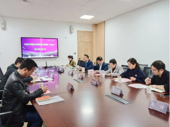 214会议室召开。新商业学堂主任金祥荣和胡纲高、学堂荣誉主任邱妘、学堂副主任韩雯琛、许媛及学堂其他老师及工作人员出席了本次会议。会议由学堂执行主任陈涛主持。