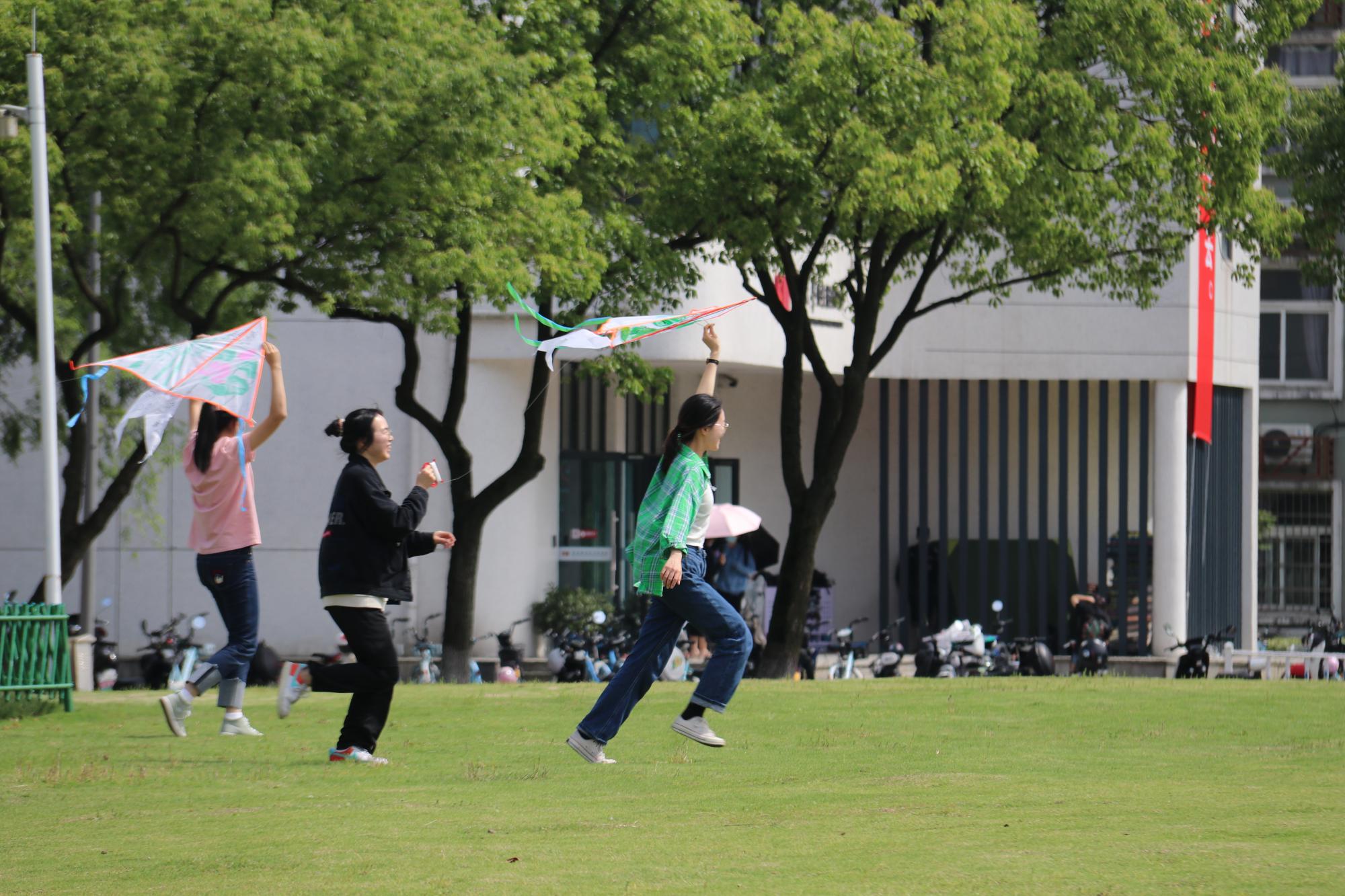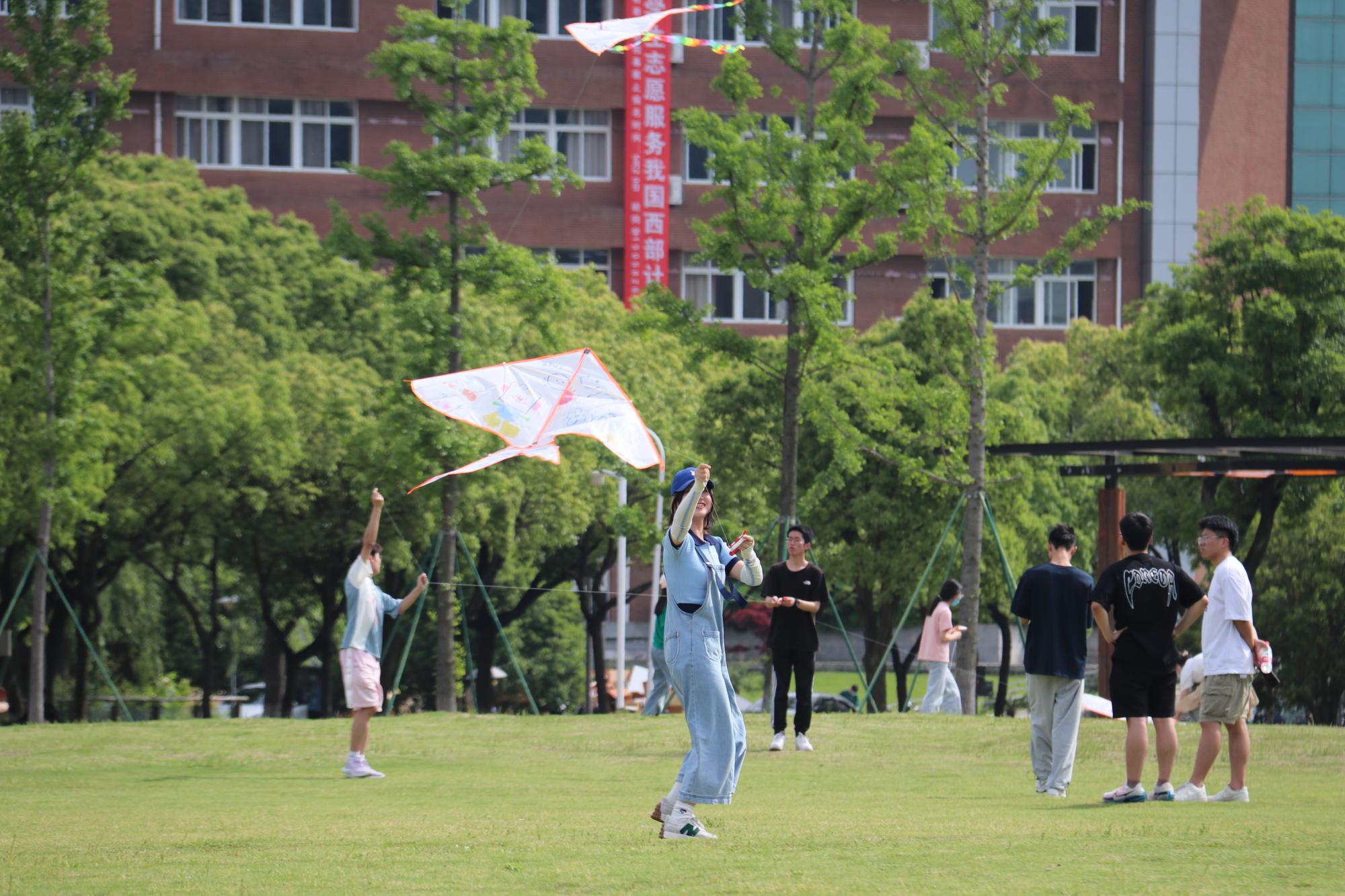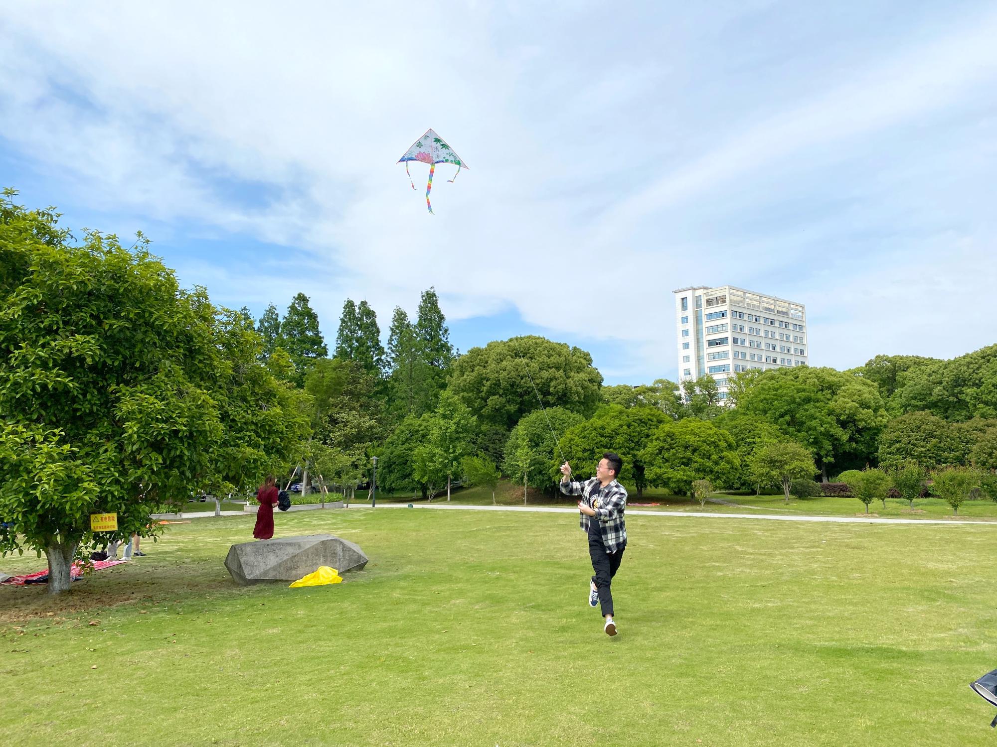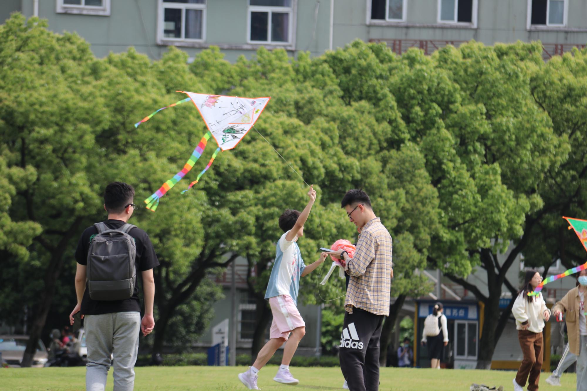"只凭风力健,不假羽毛丰。红线凌空去,青云有路通。"我们在五四青年节这天举办了风筝大赛,看着天空中一个个放飞的风筝,我感触颇深,不禁想到大学生作为青年一代,必须有担当,有理想,像风筝一样飞向更高更远的天空。如今,五四火炬已经传到我们大学生手中,我们要用青春作桨,以梦想为帆,让青春之光照亮奋进之路。——19工管2班 陈瑶瑶