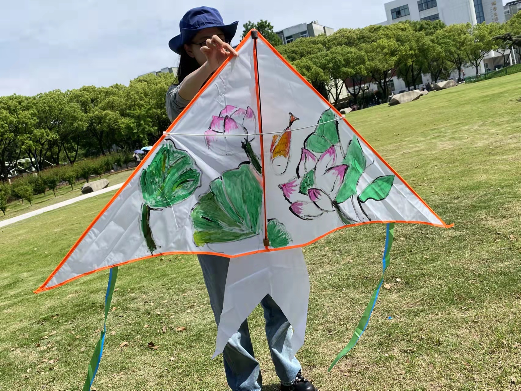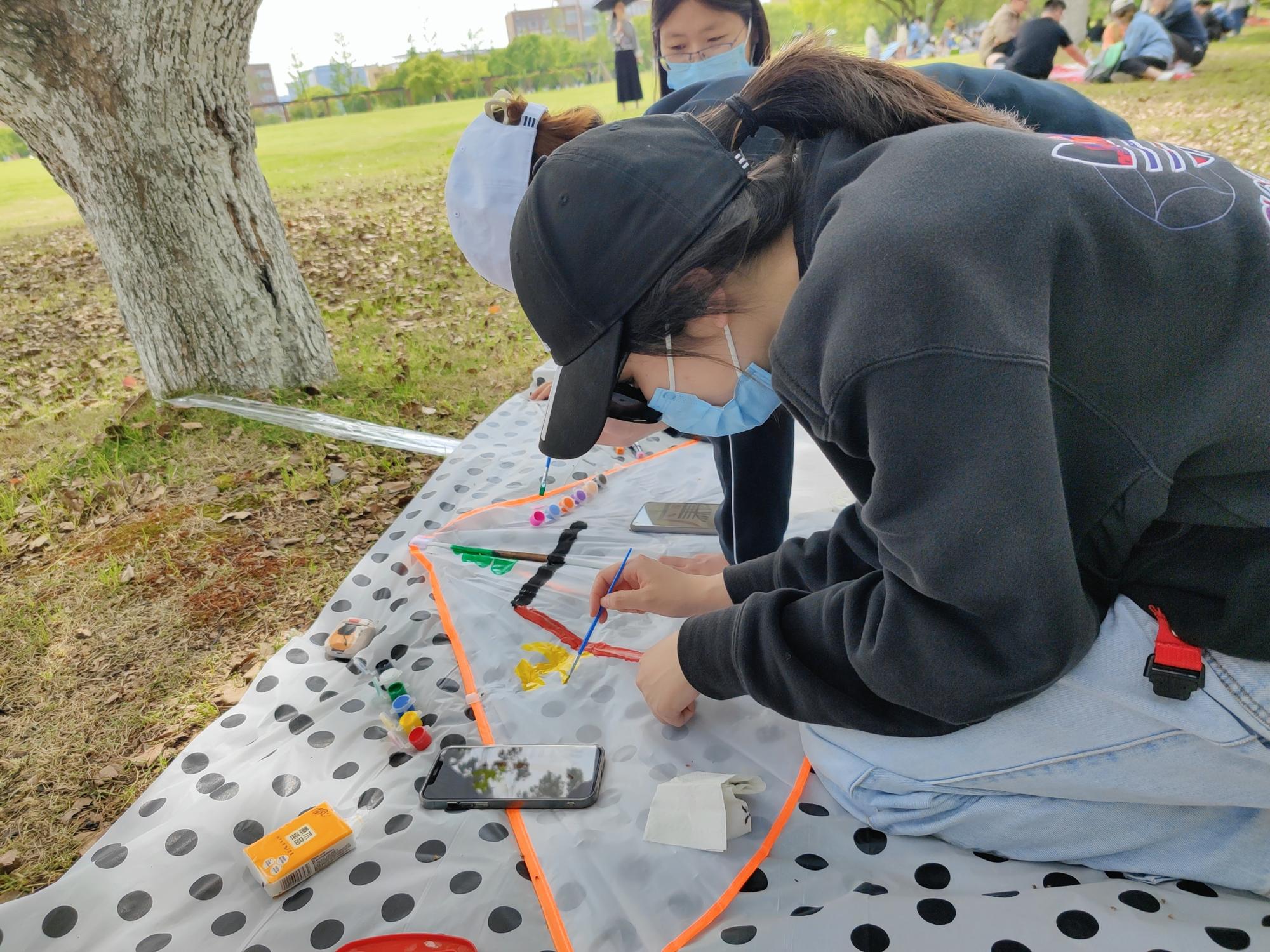 经过紧张的设计和绘画环节,同学们带着自己的作品,开始了放风筝的环节。奔跑、展翅、放飞,大草坪上传来阵阵欢声笑语。
