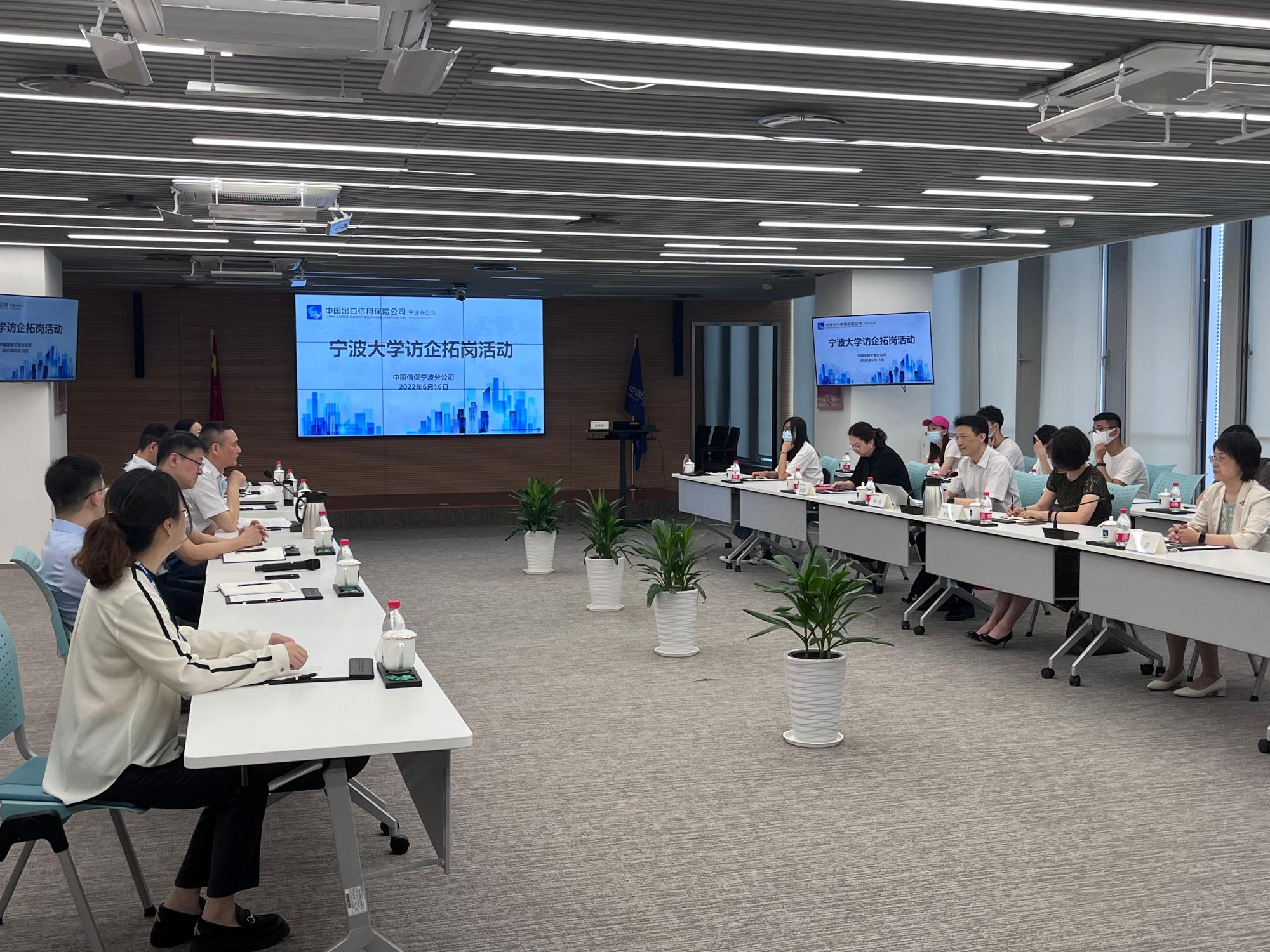 学生代表走访中国出口信用保险宁波分公司,开启了av直播访企拓岗第七站。中国出口信用保险宁波分公司副总经理余林建,人力资源处副主任王剑江以及包静姝、何宁、陈吟轶、王诗璎四位学长学姐热情接待了我校来访,校企双方进行座谈交流,此外,陈立峰、刘霞两位经理参与人才协同培养课题专项研讨。