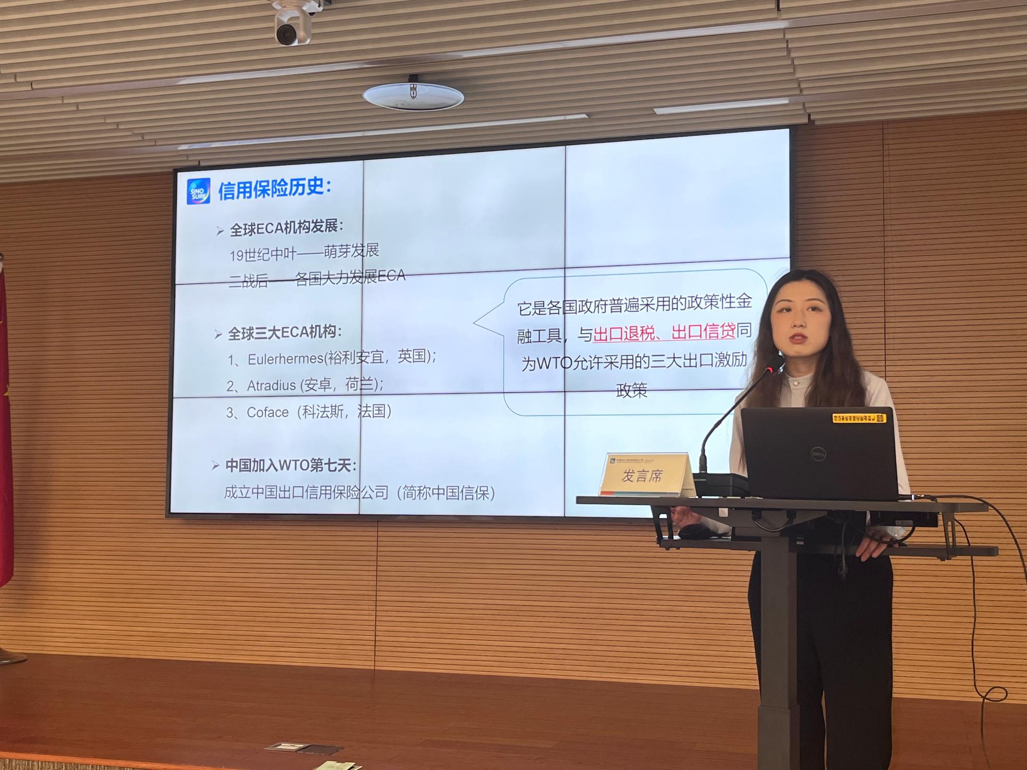 首先,余林建经理介绍了中国出口信用保险宁波分公司在外贸行业的重大地位,深得企业的信赖;随后朱一鸿老师介绍av直播教师团队、专业、学生的基本情况,同时提议在跨境电商专业的微专业人才协同培养上可以进行深入的合作,得到了企业方的认可与支持;最后2015级金融专业校友王诗璎为大家全面介绍了中国出口信用保险宁波分公司的企业发展历程与av直播。