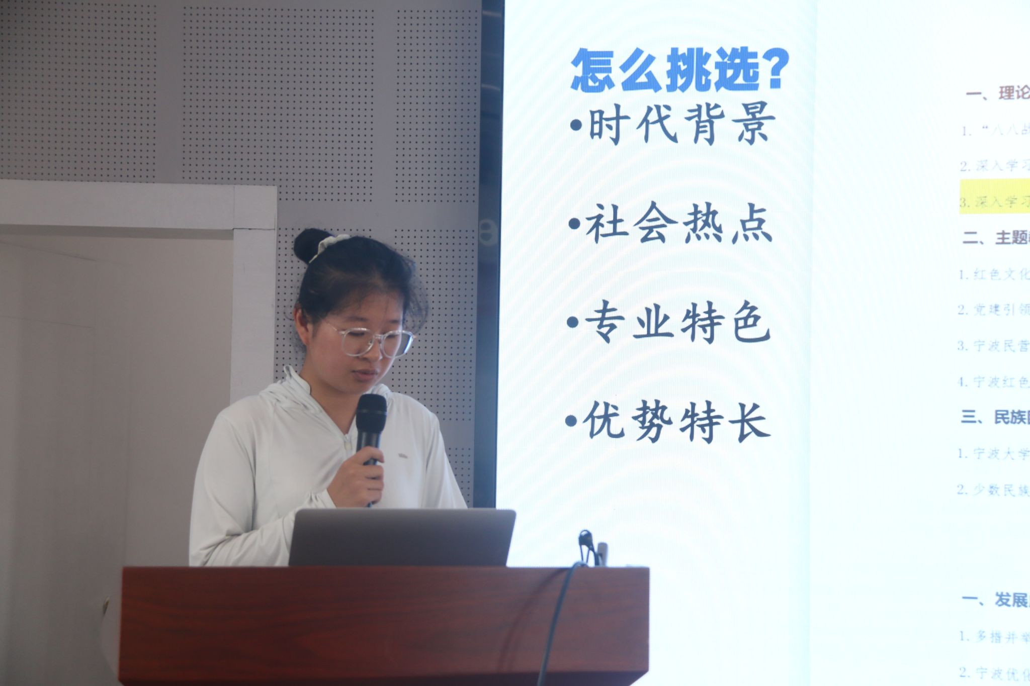 团委实践部的学生干部对暑期社会实践活动中的安全报备、媒体宣传、活动报销、评奖评优等四大块工作做了解释说明。