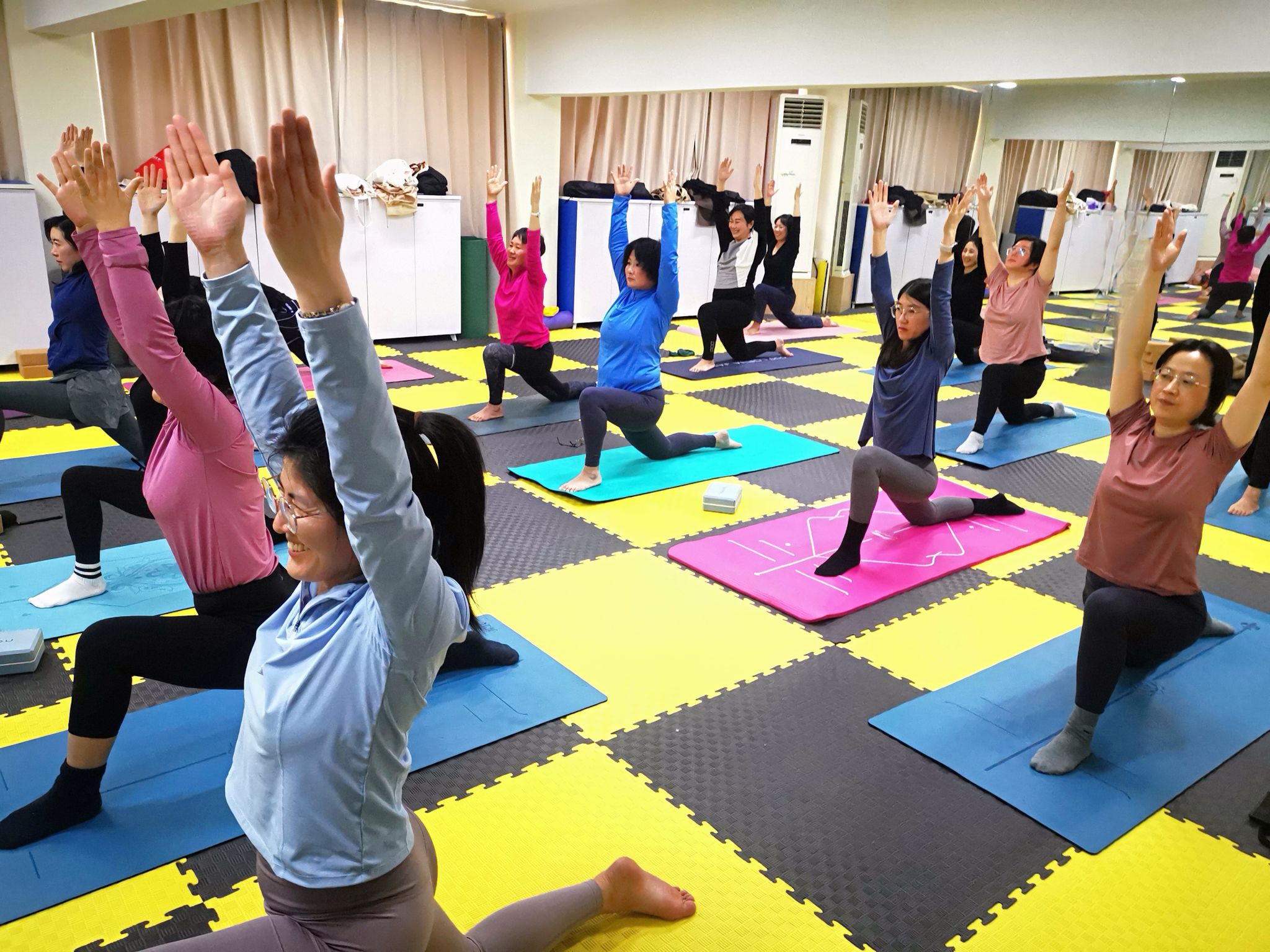 瑜伽室开展瑜伽训练营活动。活动邀请校内外瑜伽专业教练对av直播女教工进行专业辅导,每周三次,时间安排在中午休息时间。