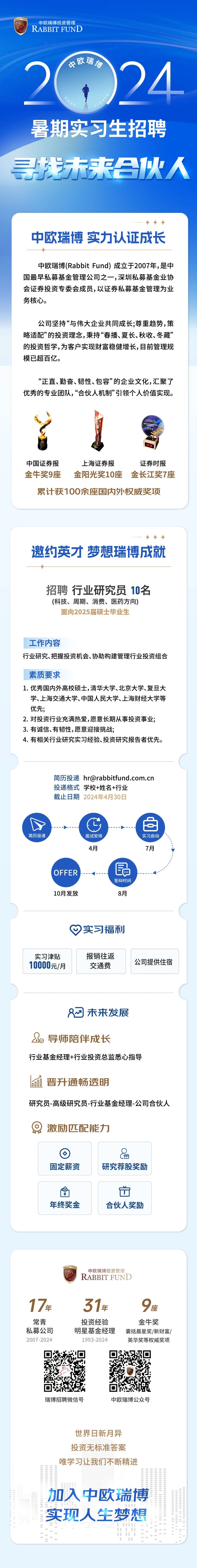 中欧瑞博投资管理公司2024招聘简章