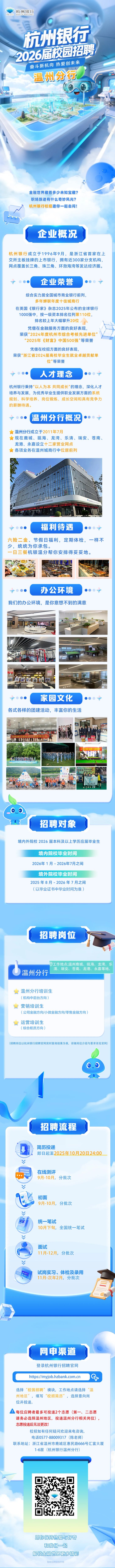杭州银行温州分行校园招聘简章