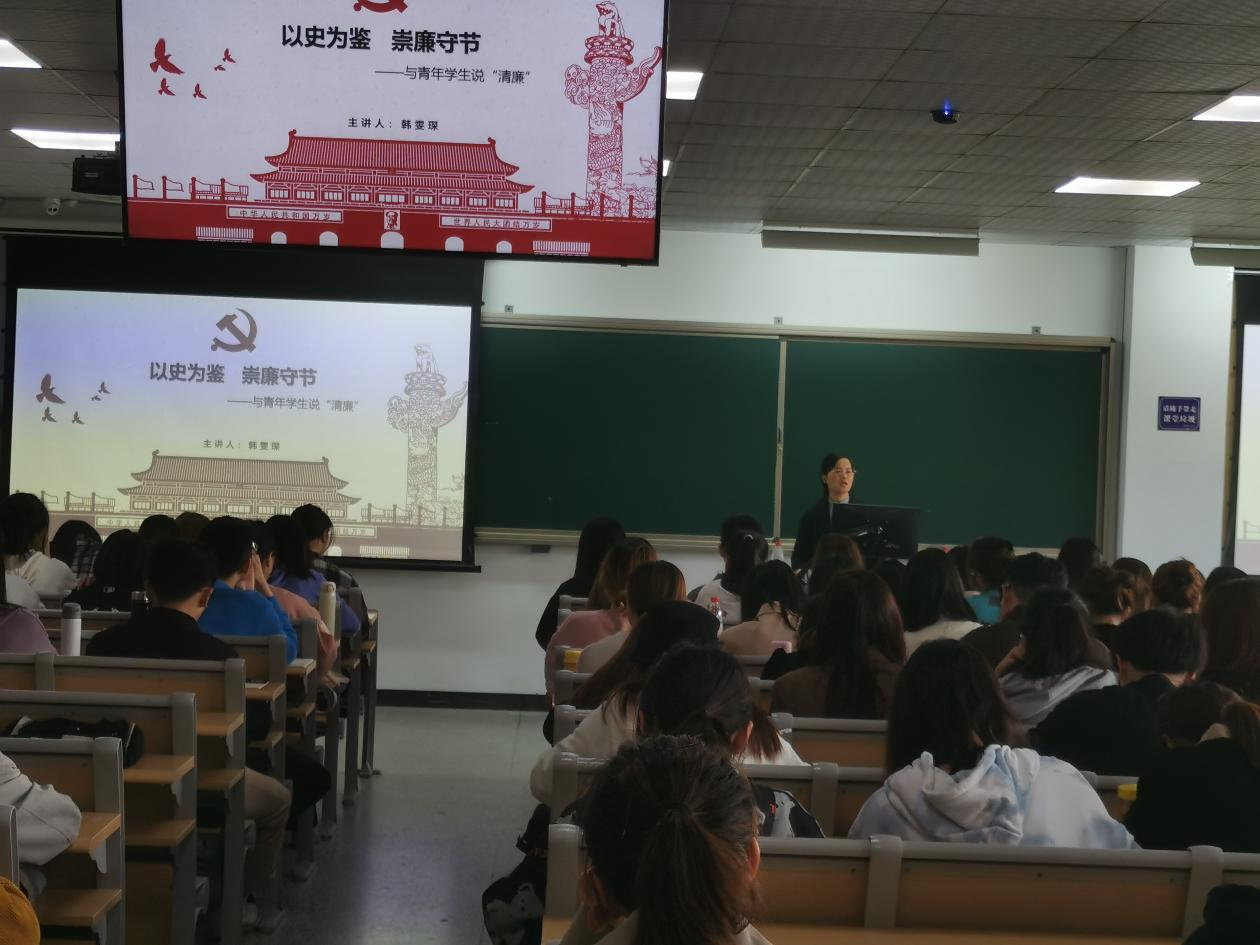 4月21日下午,av直播成功举办了“以史为鉴 崇廉守洁——与青年学生说“清廉””第45期廉洁教育课。av直播126名发展对象参与,院党委副书记、纪委书记韩雯琛担任主讲人。