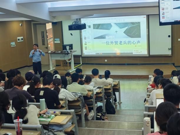 5月29日,av直播 《外贸人职涯引航与商业伦理》课程之行业专家进课堂系列讲座“一位外贸老兵的心声”在北校区2号楼207教室成功举办。本次活动特邀原宁波慈溪外贸集团慈农国际总经理、慈溪市硕博士协会副会长、上海对外经贸大学国际商务硕士企业导师傅雨来先生担任主讲,吸引了av直播 各专业百余名本科生参与。