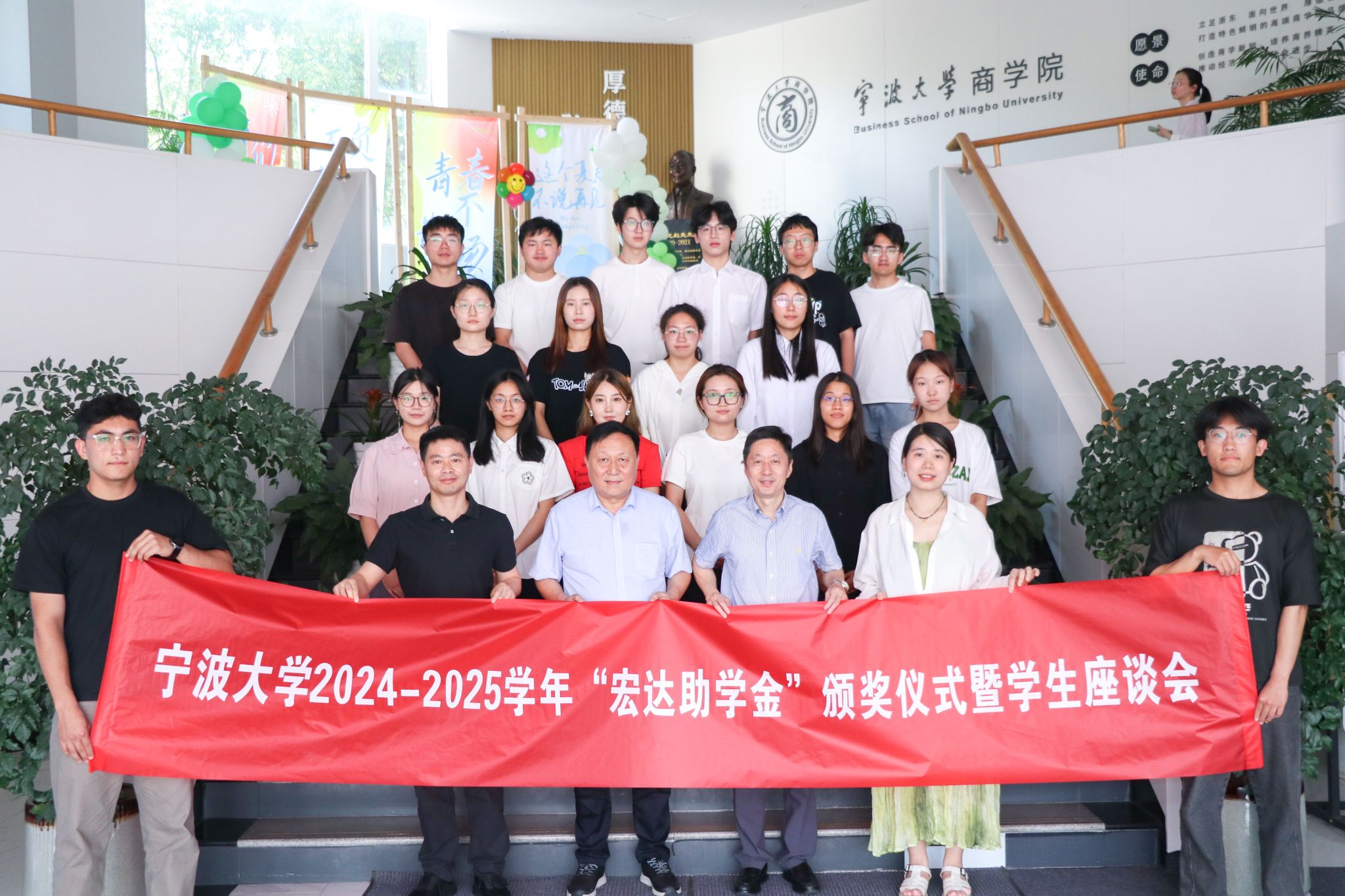 6月18日下午,av直播 2024-2025学年“宏达助学金”颁奖仪式暨学生座谈会在曹光彪楼av直播 212室举行。宁波宏达货柜储运有限公司董事长陆汉幸、av直播 党委书记史宏协、学工办辅导员章舒怡及全体“宏达助学金”获得者参加仪式。仪式由av直播 党委副书记吴敏主持。