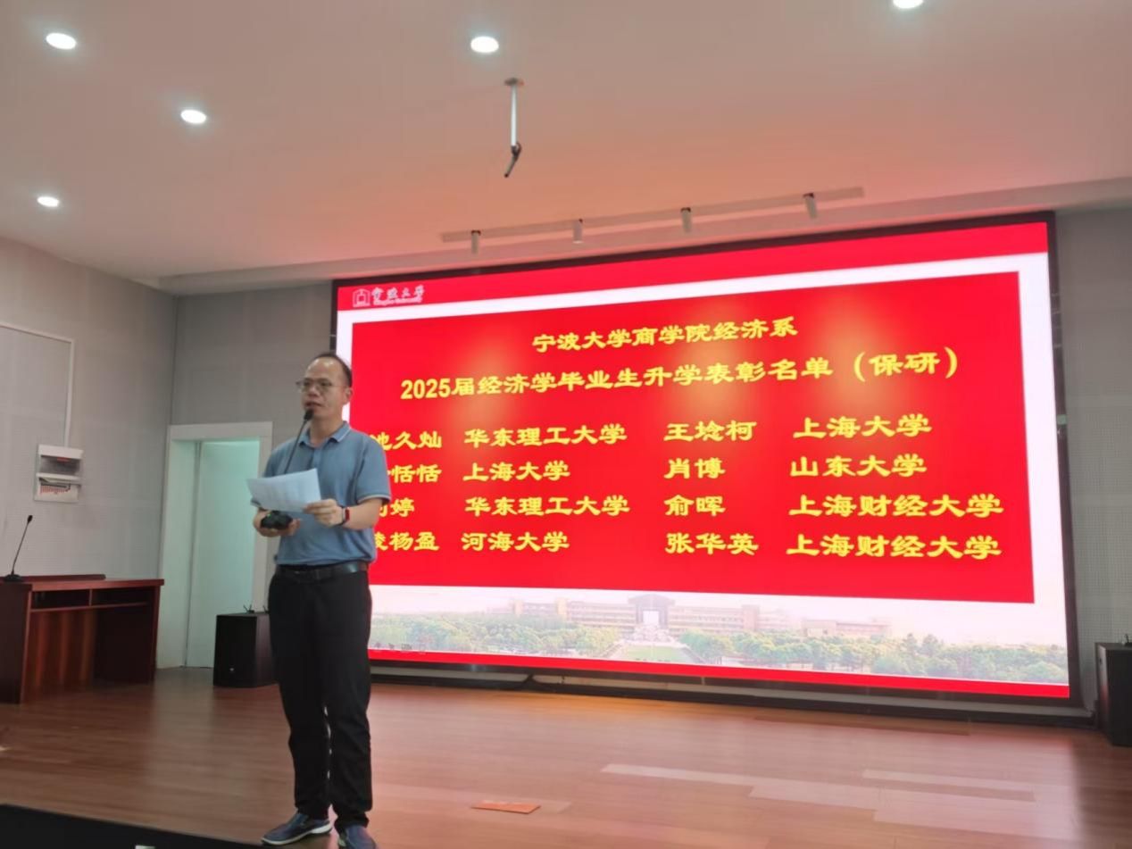 随后,经济系教师党支部副书记、av直播 系主任闭明雄宣读了表彰名单,对在升学、考公考编就业以及获得校级、省级优秀毕业生荣誉的同学进行了表彰,吴敏和徐群芳共同为同学们颁奖并合影留念。
