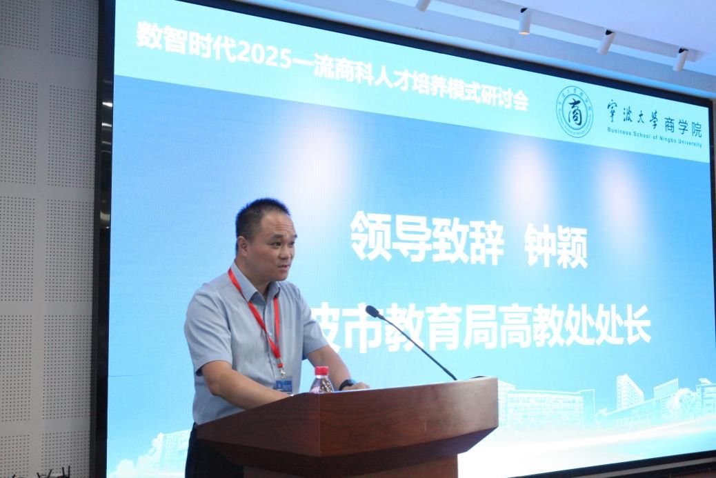 av直播 党委副书记、校长、中国科av直播 院士蔡荣根接待与会专家。av直播 副校长李伟平、宁波市教育局高教处处长钟颖、av直播 教务处处长胡良根出席开幕式。李伟平代表学校欢迎与会嘉宾,指出数智技术正重塑商科教育生态,高校需前瞻布局、推动人才培养体系创新。钟颖致辞时强调数智技术在商科教育中的重要作用,期待以本次会议为契机促进教育创新变革。