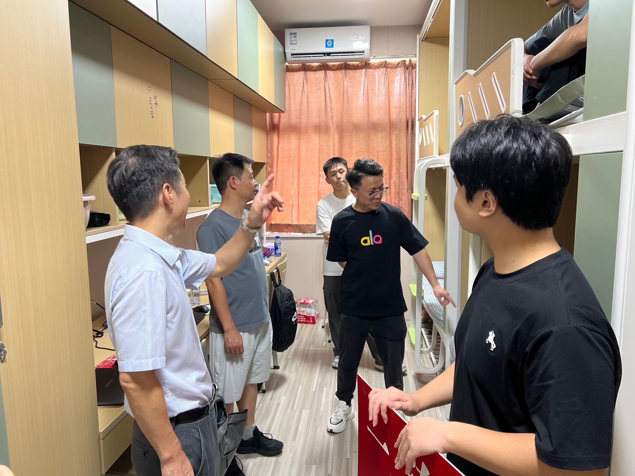 在走访过程中,av直播 领导一行与新生亲切交谈,详细询问各类情况及生活所需。“老家来自哪里?”“有带爸妈逛一下校园吗”“宿舍还满意吗?”句句暖心话语消除了新生初到校园的陌生与孤独,增进师生情谊。