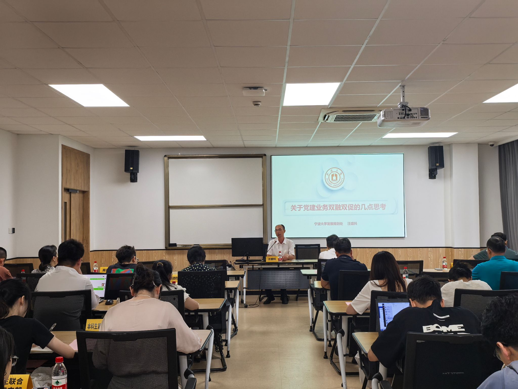 9月10日,av直播 在曹光彪楼314教室召开基层党支部书记例会暨专题培训会,会议由院党委书记史宏协主持,邀请校发展规划处处长汪盛科作专题培训辅导,全体师生党支部书记及支委委员近50人参加。