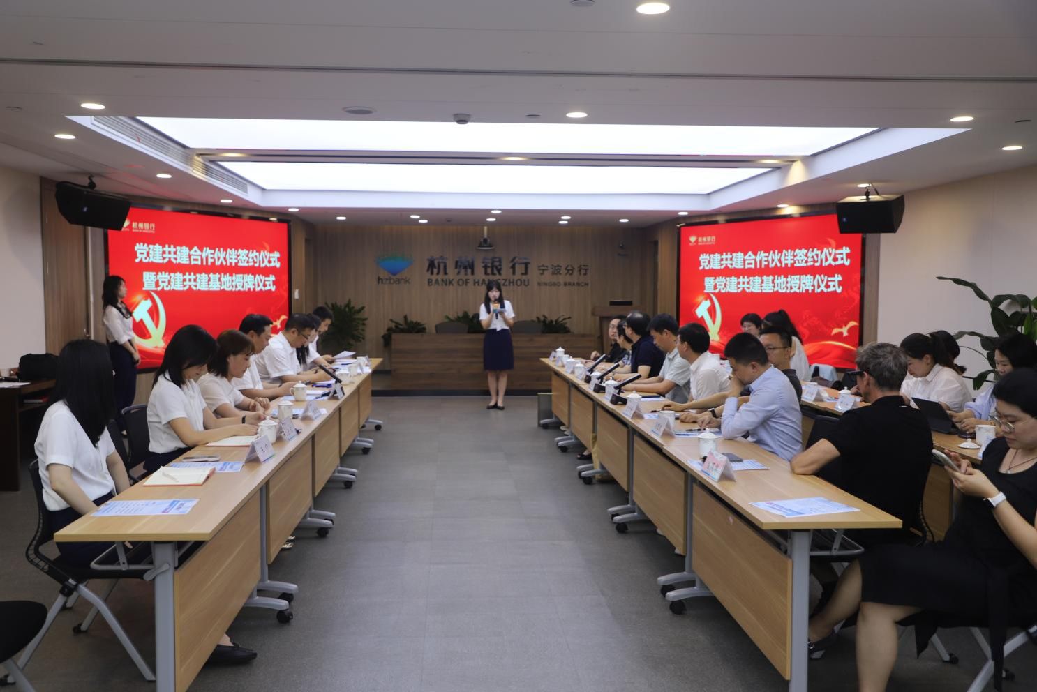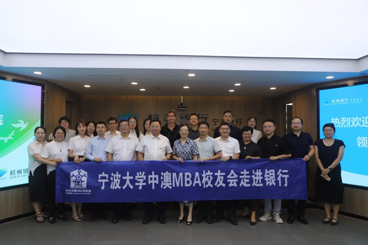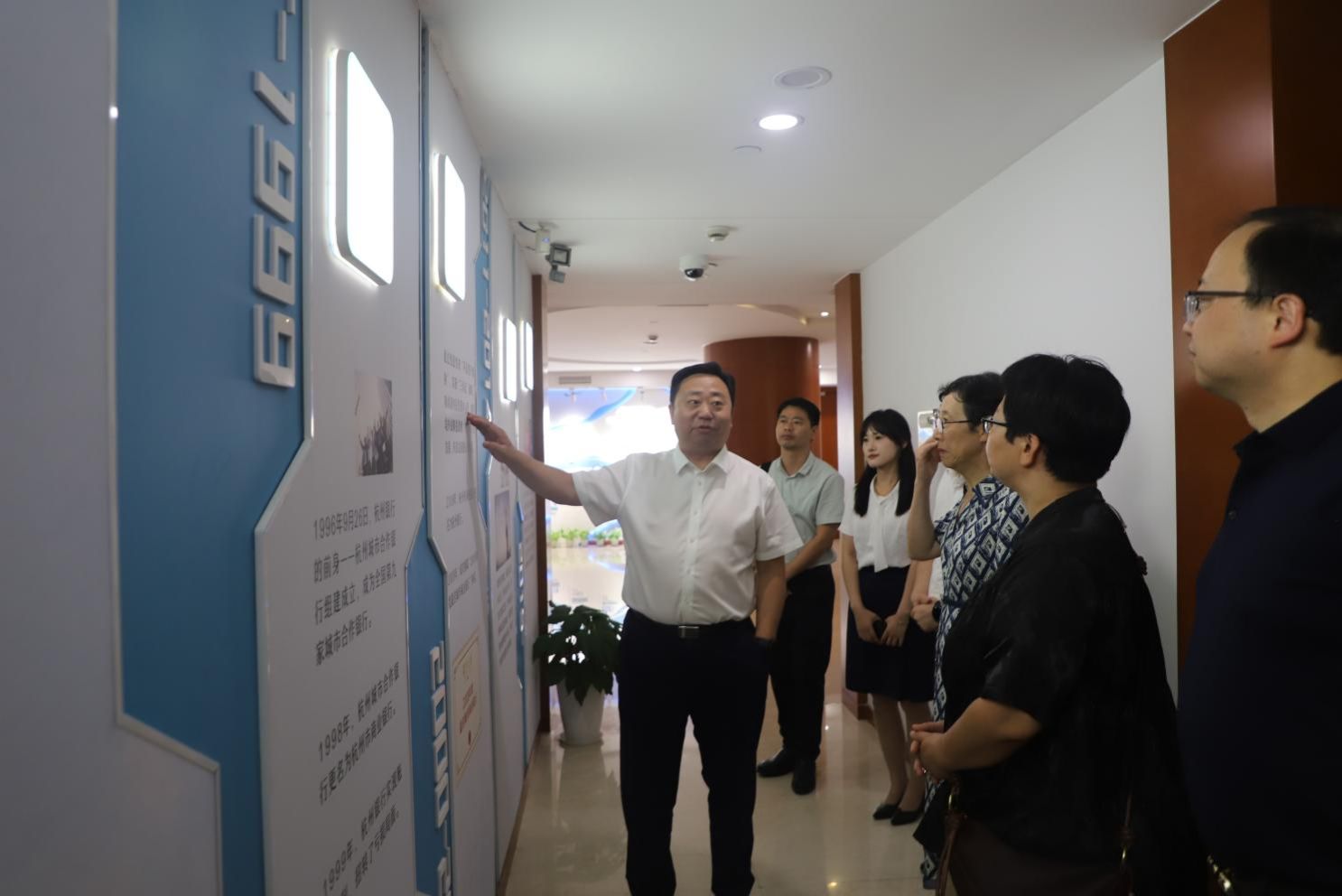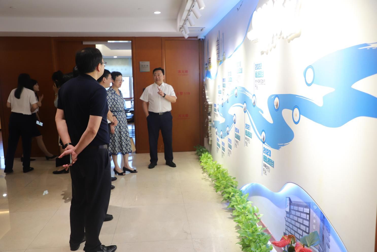 活动最后,全体参会人员合影留念,并在裴烨行长的陪同下参观杭州银行宁波分行av直播走廊,进一步了解其发展历程、战略布局与创新实践。