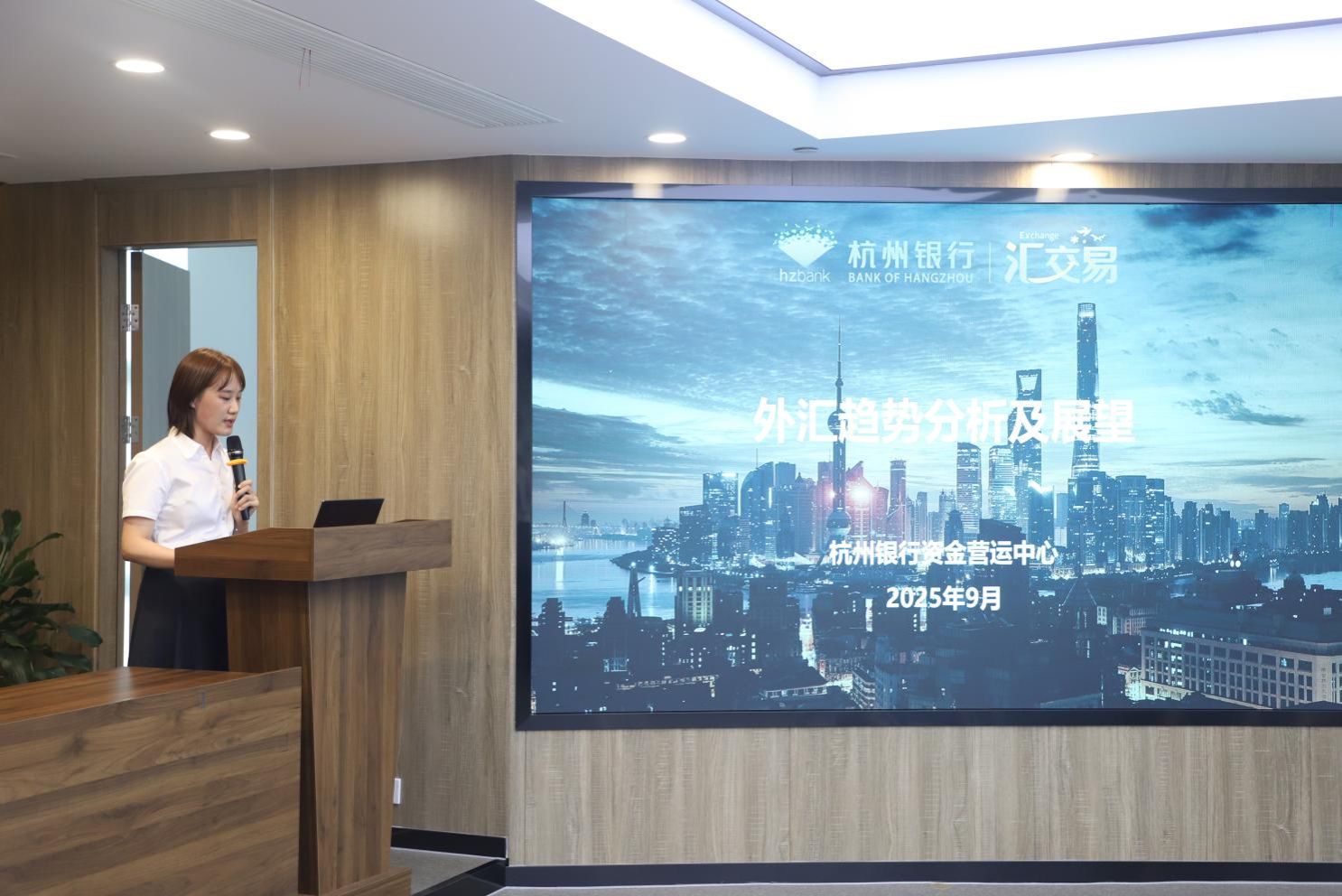 在主题分享环节,杭州银行资金营运中心外汇专家施晓楠就2025年外汇市场的整体环境与表现进行了框架性分析,探讨了影响汇率走势的多重因素。她在分享中提到,当前全球经济格局正处于动态演变之中,各类资产的相对表现也呈现出新的特征。针对人民币汇率,她分享了运行逻辑和后续走势,并指出当前跨境资金流动呈现更加均衡的态势,未来汇率双向波动将成为常态。最后,她提醒企业客户在日常经营中持续关注汇率风险,建议积极了解和运用各类外汇衍生工具,通过构建适合自身需求的避险策略,进一步提升财务稳健性。