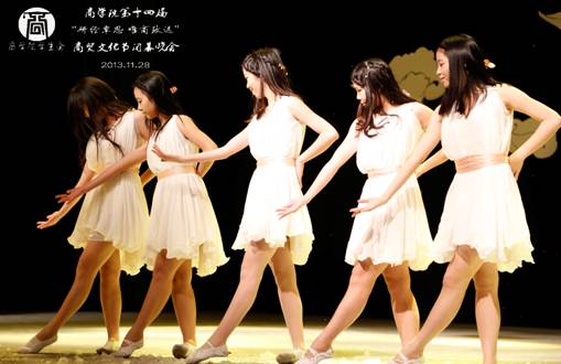 2013年11月28日晚,在火热的开场舞中,“研经覃思 ,唯商致远”av直播 第十四届商贸文化节闭幕晚会在林杏琴会堂正式拉开狂欢帷幕。