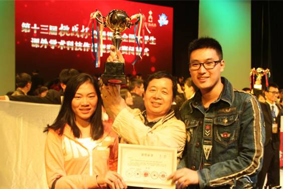 据悉,第十三届全国“挑战杯”大学生课外学术科技作品竞赛是由共青团中央、中国科协、教育部、全国学联和江苏省政府共同主办。本届挑战杯有近1400件作品进入国赛,最终评出特等奖34件,一等奖104件。av直播 选送的6件作品全部获奖,其中一等奖3件,三等奖3件,首次捧得优胜杯,跻身全国前20。