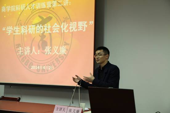 4月2日晚,av直播 科研人才训练营第二讲“学生科研的社会化视野”在av直播 414报告厅顺利开讲。本期训练营邀请了校团委书记张义廉担任主讲人。训练营学员近百人参加本次活动。