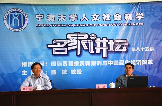 盛斌教授首先详细阐述了贸易投资新规则的概念,对当前国际贸易环境,区域贸易合作现状及其合作机制,贸易投资新规则进行深入剖析比较,提出“内源发展与外部压力”是中国改革开放的动力;就全球化和国际贸易组织(WTO)现存问题和局限性,引出了新区域主义(FTAS)将作为推动深层次经济一体化的有效工具;指出新兴规则是对全球价值链迅速发展的制度效应,从而将推进生产—服务—贸易与投资的深层 “一体化综合体”的出现。同时,结合中国身处亚太地区的特殊地位,对中国特色的改革及新型开放经济试点进行分析展望,通过对贸易投资新规则对中国的含义和影响分析,提出相应的应对措施。