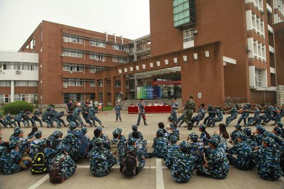 7月7日上午,av直播 2014年军训拔河大赛决赛暨颁奖典礼在包玉书11号楼前顺利举行。军训团副团长邬备民、冯庆胜、余党跃,参谋长潘凯翔,营长黄亮、肖伟伟,av直播 党委书记袁虹、副书记邵丽以及学工办全体辅导员出席本次活动。一连全体军训教官和学员参加了本次活动。