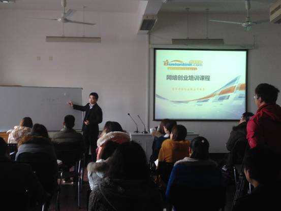 开班仪式上,单联军先生就目前社会关注创业、宁波市将深化建设“国家电子商务示范城市”等情况向同学们做了介绍,鼓励同学们通过此次培训了解网络创业、敢于创业。紧接着,方莹芬副处长讲话,对宁波市人力资源和社会保障局对我校的支持表示感谢,同时也对首期试点班学员提出了要求,希望同学们认真听课、做好笔记。随后,本次培训第一堂课正式开课,杭州沃土教育科技有限公司聂兵老师担任此次课程主讲老师。