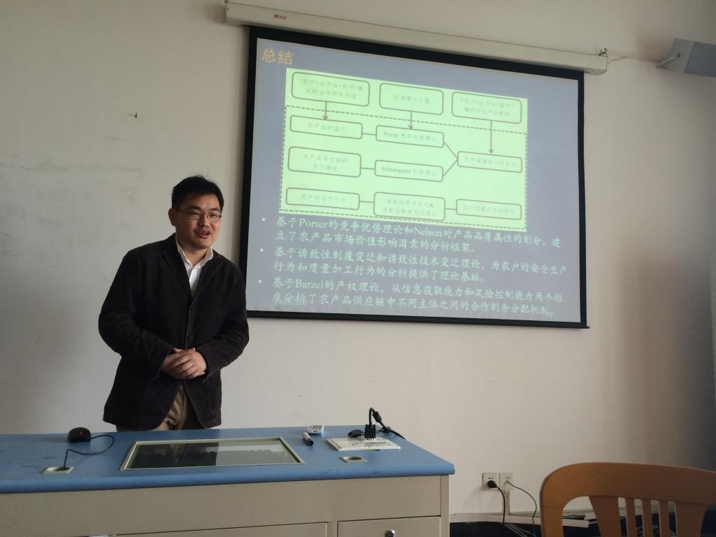 为及时总结和分享学术论文撰写与项目申报经验,适时动员和推进浙江省自然科学基金等项目的申报工作,2015年5月6日上午,主题为“农产品供应链研究:合作绩效与剩余分配”的学术沙龙和课题申报经验交流会,在av直播 523会议室如期举行。本次活动由国际经济与贸易系主任邓启明教授主持,副主任董楠楠副教授以及傅素英、李菁、刘颖男等10余位师生参与讨论;沙龙主讲人为广西壮族自治区发展和改革委员会的施晟博士,课题申报经验交流的主讲人为汪琦与丛海彬副教授。