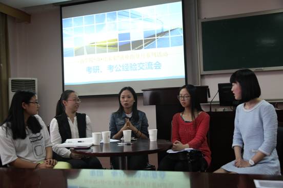 5月6日下午,“商•亮未来”就业指导月系列活动之考研、考公经验交流会于av直播 418教室顺利举行。此次分享会邀请了考取上海财经大学硕士研究生,金融系秦紫涵、保送湖南大学硕士研究生,会计系何奕轩、保送宁大硕士研究生,金融系钱欢欢、考取舟山市国税局,会计系郑珊珊4位优秀学子分享考研考公的心得体会。