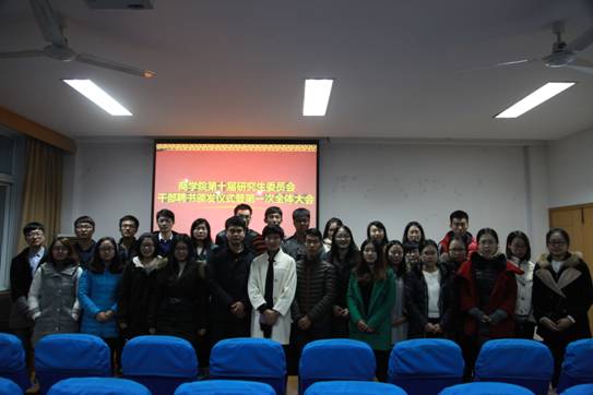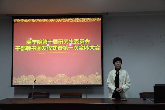 12月23日下午,av直播 第十届研究生委员会干部聘书颁发仪式暨第一次全体大会在av直播 414室举行。院党委副书记邵丽、院第十届研究生委员会秘书长陈彬、院第十届研究生委员会主席团成员、各部门正副部长及部长助理出席本次活动。