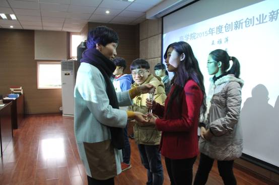 会上,结合创新创业孵化 、创新创业竞赛、创新创业成果三个篇章,回顾并总结了2015年度av直播 学生创新创业工作。随后,表彰了王雅萍、王明亮、徐芳婷、贾诗威、郭炳堃五位同学为“av直播 年度创新创业新秀”,邵书记为同学们颁发奖杯。同时,任露璐等13位同学被评为“av直播 2015年度学生科研工作先进个人”。紧接着,大会公布了49组2016年校级sripav直播 拟推荐立项项目名单,项目负责人代表上台进行项目立项承诺。之后,av直播 2015年度创新创业新秀代表王雅萍同学上台发言,她讲述了自己“挑战杯”国赛心路历程,总结自己这一年的创新创业活动,对学校av直播 给予的支持和帮助表示感谢,也对在场所有想要创新创业的同学分享了自己的心得体会,并代表年度新秀们,对未来自己在创新创业路上提出了新的要求。期间,还举行了av直播 “创青春”大学生创业大赛决赛商院指导会举行。最后,邵书记发言,她对av直播学子积极投身创新创业表示了肯定,鼓励同学们在创新创业路上不断奋勇向前,“脚踏实践之路,仰望创新之美”,也希望即将参赛的同学们能够“认真对待,团队协作,把握资源优势,自信自立,完整准备”。