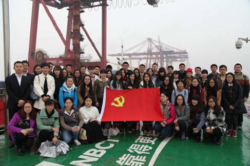 12月9日下午,av直播党委组织党校学员赴宁波港开展了以“集结港城情,共筑中国梦”为主题的考察活动。院党委副书记、分党校副校长邵丽,党务秘书、辅导员骆嫕与50名第33期预备党员培训班学员参加了本次考察。