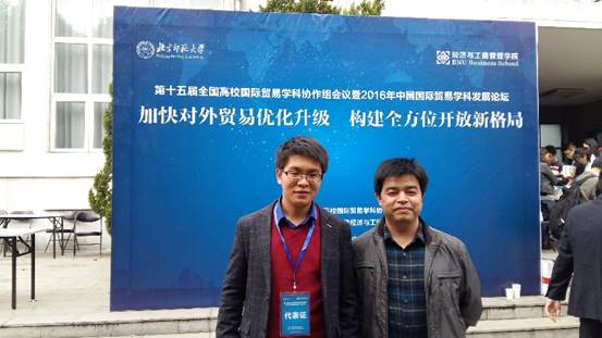 2016年10月 21-23日,第十五届全国高校国际贸易学科协作组会议暨 2016 年中国国际贸易学科发展论坛在北京师范大学召开,会议由全国高校国际贸易学科协作组秘书处与北京师范大学经济与工商管理av直播 联合主办。本次会议以“加快对外贸易优化升级、构建全方位开放新格局”为主题,国际贸易研究所叶劲松和黄远浙两位老师受邀参加了会议,期间积极参加“利用外资专题”、“对外直接投资专题”和“学科建设与人才培养专题”等专题论坛,与来自全国各地高校的专家进行了学术交流与经验分享。