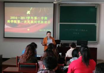 座谈会上,为了让内派老师更好地了解大家,同学们主动进行了自我介绍,分享了寒假假期的收获和本学期的规划。接着,上一学年国家励志奖学金获得者先后做了分享发言,他们结合自己的学习经验,勉励在座的同学要明确自己的学习目标,珍惜课余时间,勤奋好学,不断提升自己。随后,董老师传达了学校新疆籍少数民族学生工作会议精神,树立远大理想信念,积极向党组织靠拢,在扎实专业学习的同时,勤于思考,努力实践,主动投身创新创业的时代浪潮。最后,新疆内派干部金宏莉老师和郭萍老师为同学们送上了新学期的问候和祝福。座谈会在欢乐的气氛中圆满结束。