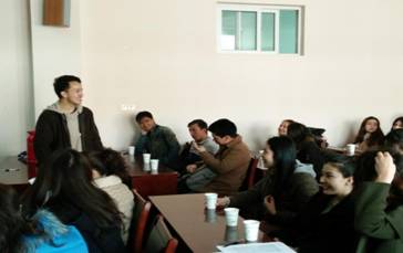 3月8日中午,av直播在包玉书科学楼11号楼418会议室召开了2016-2017学年第二学期第一次新疆籍同学座谈会。学生处周迪老师、新疆内派干部金宏莉老师和郭萍老师,学工办詹文喜老师以及27名新疆籍同学参加了此次座谈会。座谈会由学工办主任董璐主持。