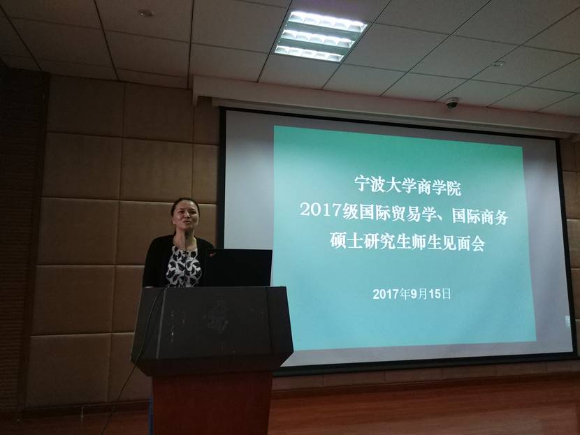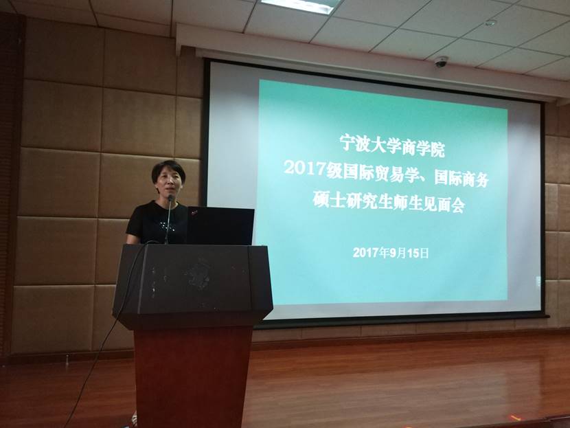 见面会伊始,首先由周新苗副院长代表av直播 欢迎77位来自全国各地的2017级国际贸易学、国际商务硕士研究生的到来,并从av直播 硕士点的设置、学硕与专硕的关系等方面介绍了研究生的管理及推进工作,周副院长还结合自己在av直播 的求学生涯对新生们作了寄语。接着,杨丹萍副院长与新生们分享了其多年来主持国际贸易系、国际商务专业硕士点建设的工作经验,介绍了av直播 区域经济学研究团队与国际贸易研究所的渊源,欢迎大家加入宁波这一国际化港城区域经济发展的学习与研究。之后,到会的硕士研究生导师们也分别向新生们介绍了自己及所在团队的基本情况和主要研究领域,并对同学们今后学习生涯致以美好的祝福。